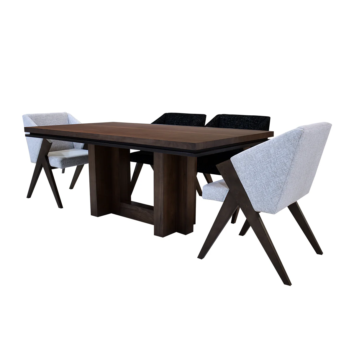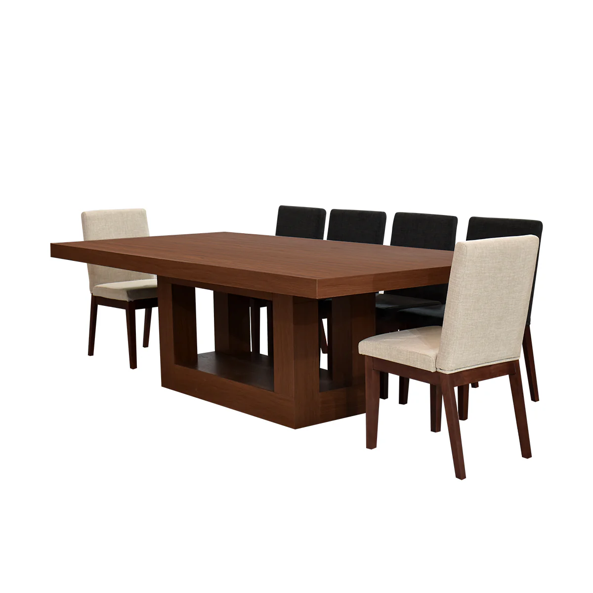Comedor Santorini - 6 sillas - Nogal (4 sillas Snow White, 2 Sillas Snow Black)