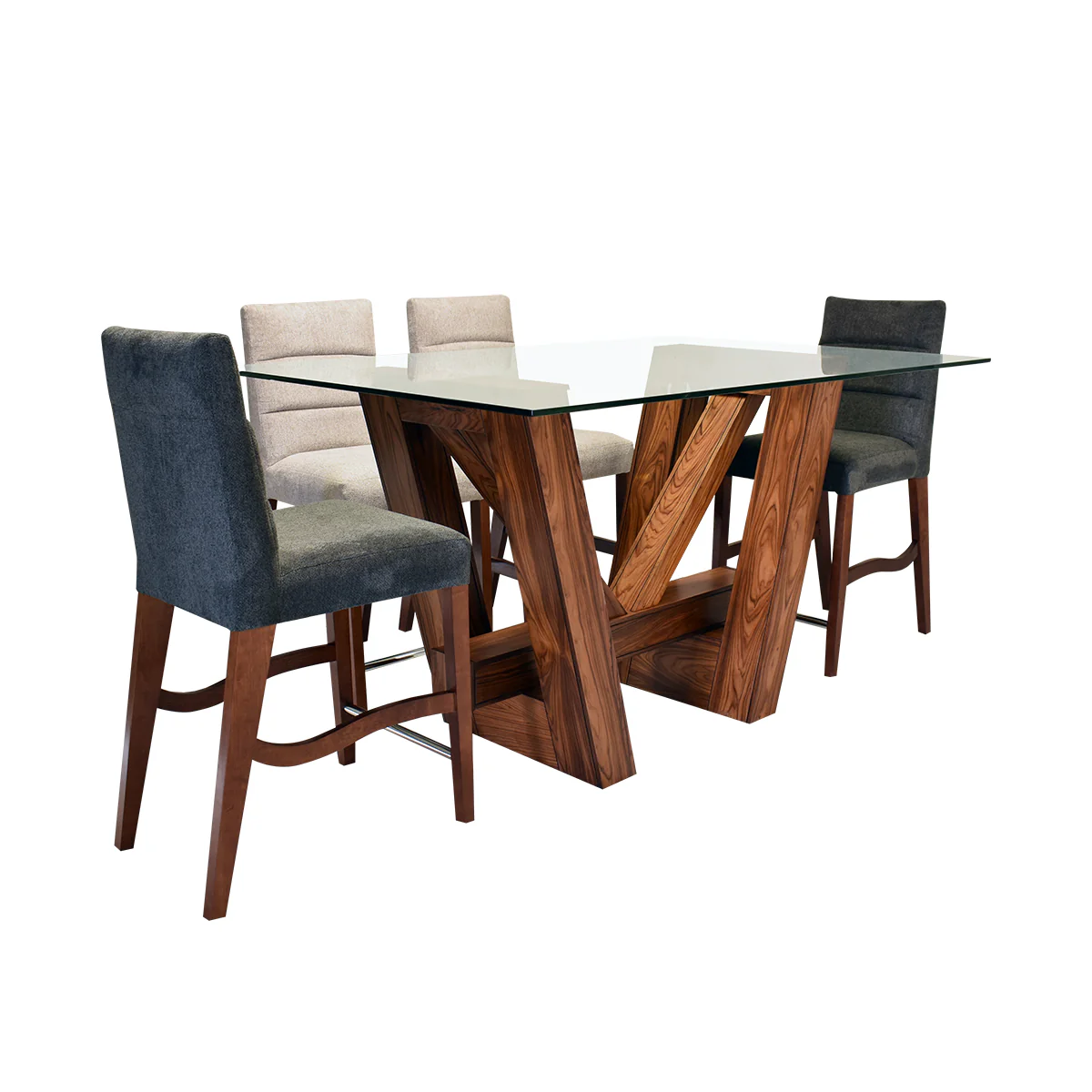 Comedor London - Parota - 4 Sillas Beige y 6 Sillas Gris