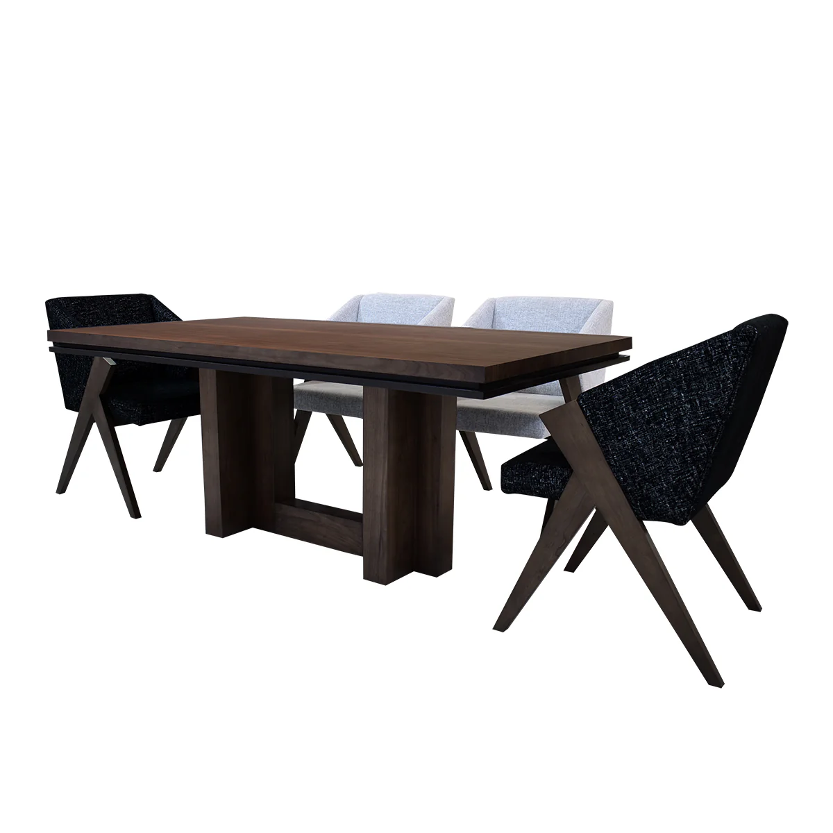 Comedor Santorini - 6 sillas - Nogal (4 sillas Snow Black, 2 Sillas Snow White)