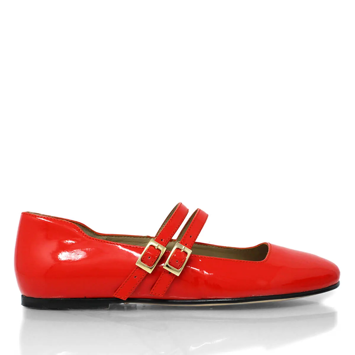 VIOLET - Charol Rojo Geranio Zapato Flat Balerina de Piso Para Dama en Piel