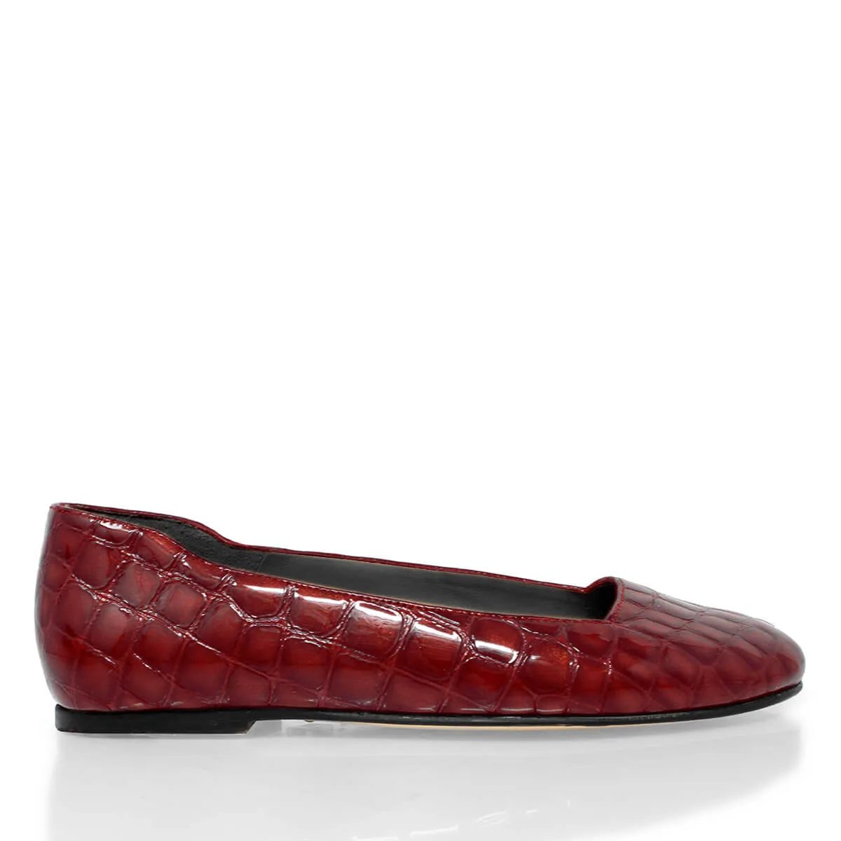 ARIADNA - Charol Vino Zapato Flat Balerina de Piso Para Dama en Piel