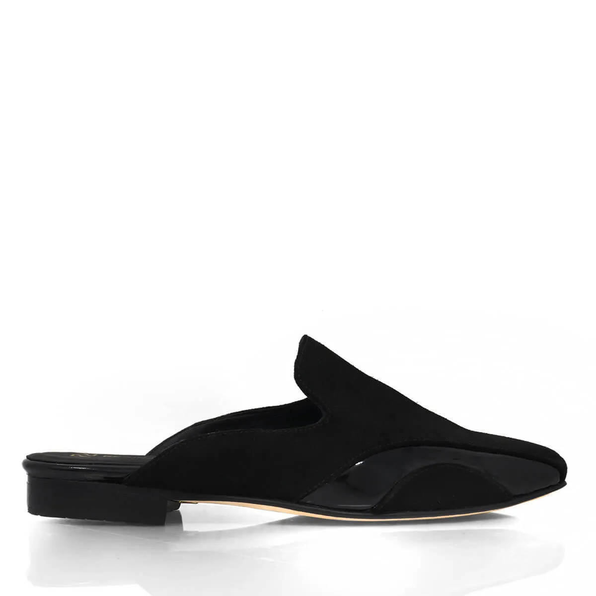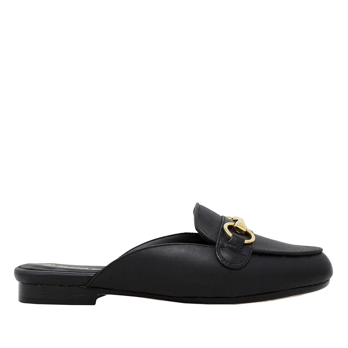 CINDY - Negro Liso Zapato Flat Mule de Piso Para Dama en Piel