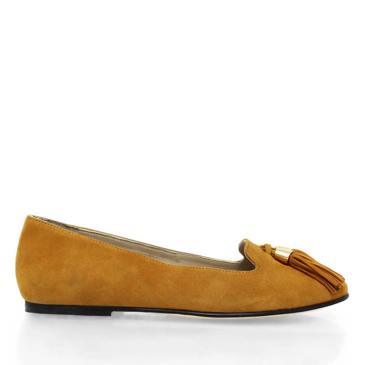 POLINA - Ante Mostaza Zapato Flat Balerina de Piso Para Dama en Piel