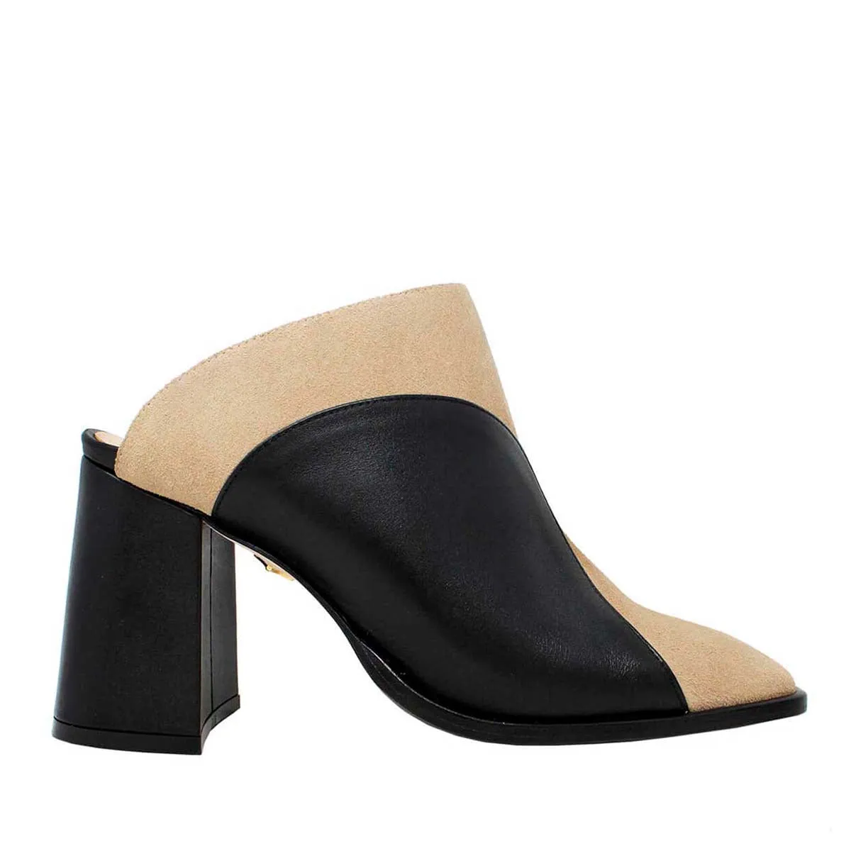 DIDI 75 - Negro y Chai Zapato Bota Botin Mule Tacon Alto para Dama en Piel