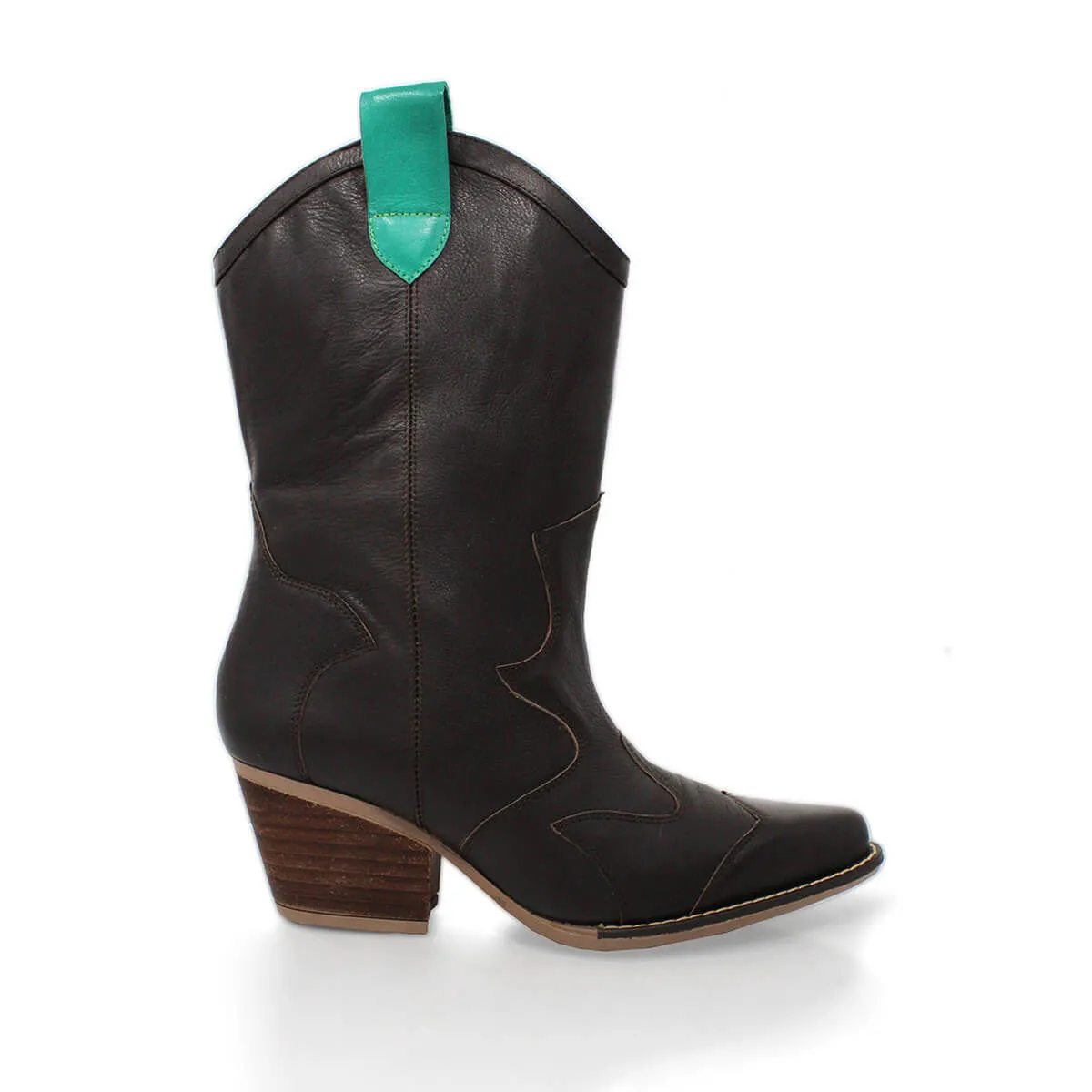 BAILEY 60 Edicion Limitada - Cafe y Verde Zapato Bota Botin Tacon Bajo Para Dama en Piel