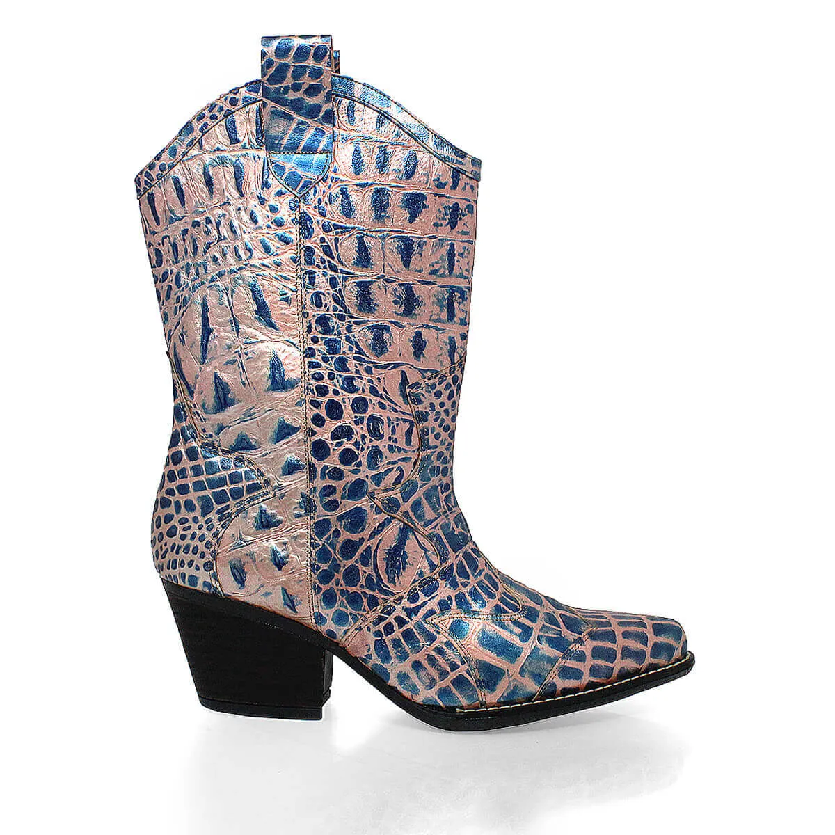 BAILEY 60 Edicion Limitada - Azul y Rosa Zapato Bota Botin Tacon Bajo Para Dama en Piel