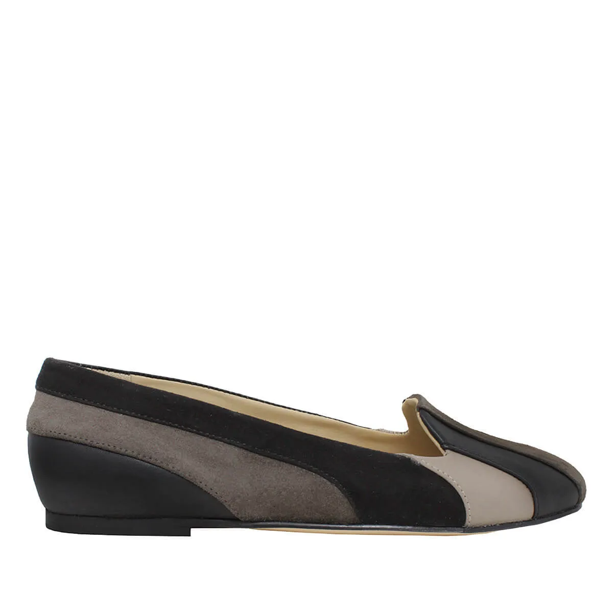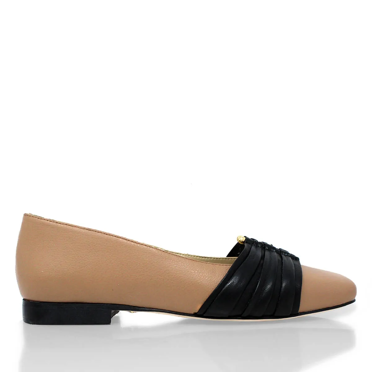 GILDA - Negro y Chai Zapato Flat Balerina de Piso para Dama en Piel