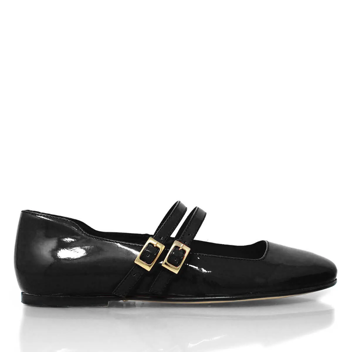 ARIADNA - Charol Negro Zapato Flat Balerina de Piso Para Dama en Piel