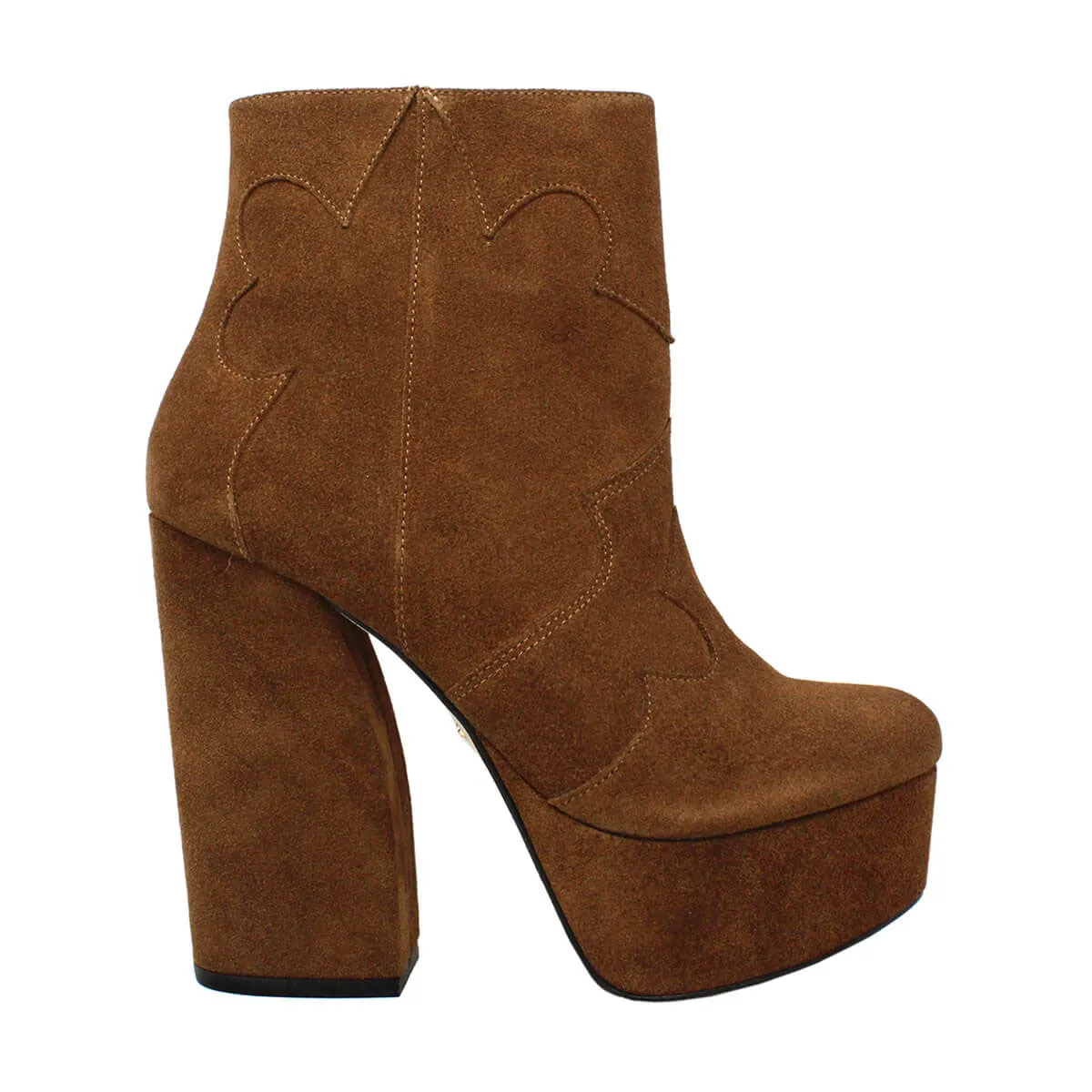 TELMA 135 - Gamuza Canela Zapato Bota Botin Plataforma Tacon Alto para Dama en Piel